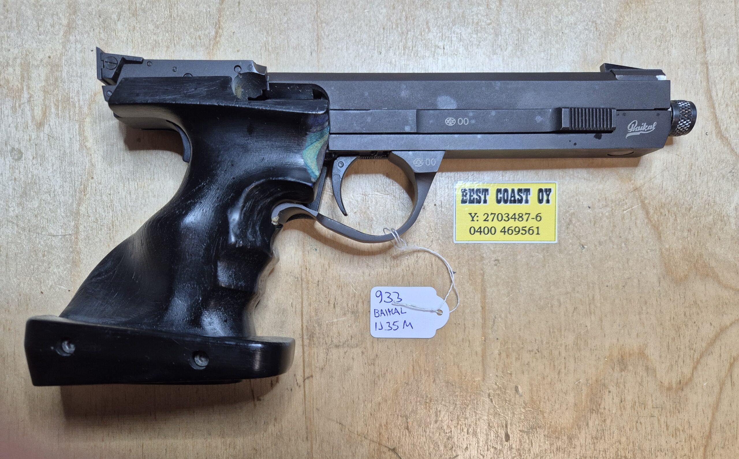 Baikal IJ 35 M pienoispistooli Walther F kahvalla. Aseessa on kierre äänenvaimentimelle ja suojaholkki kierteelle. 1 lipas.