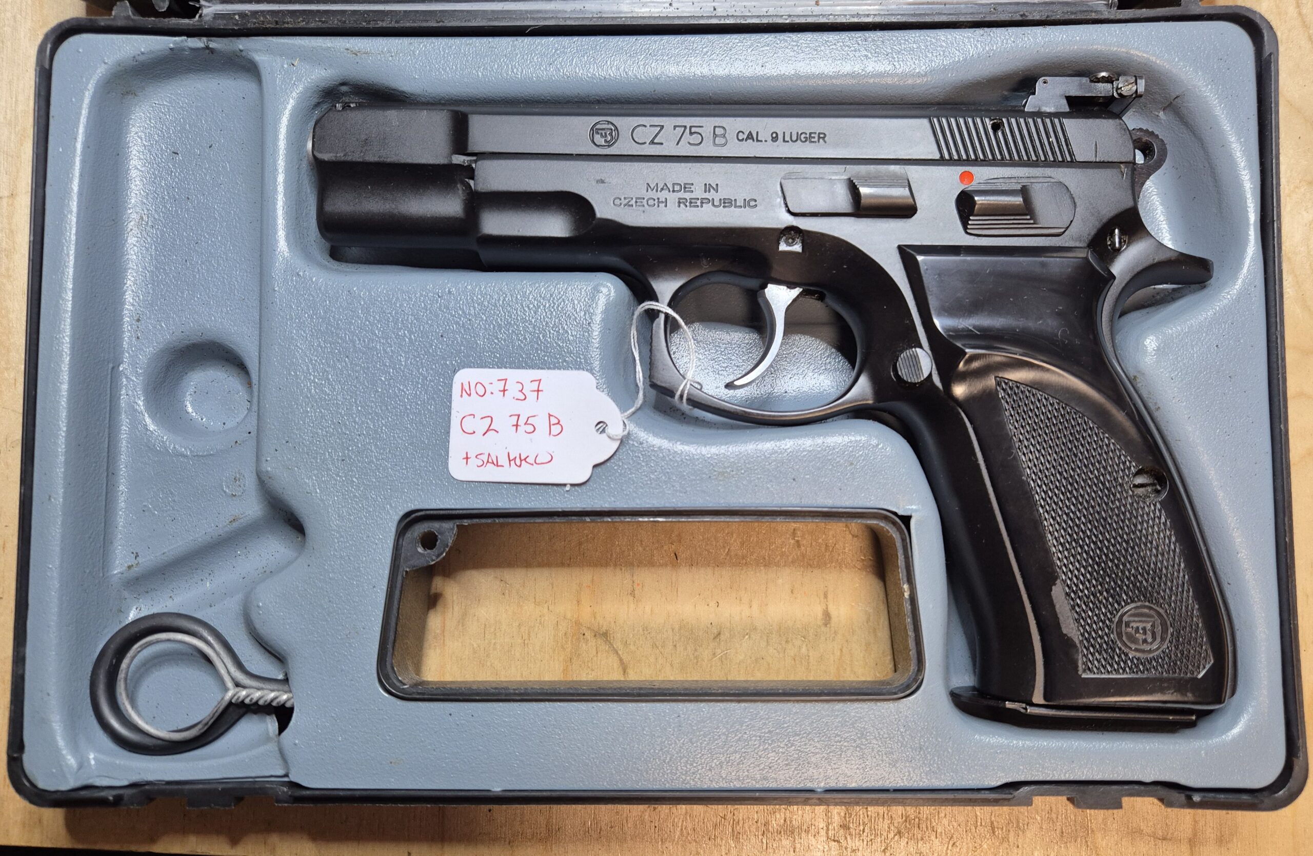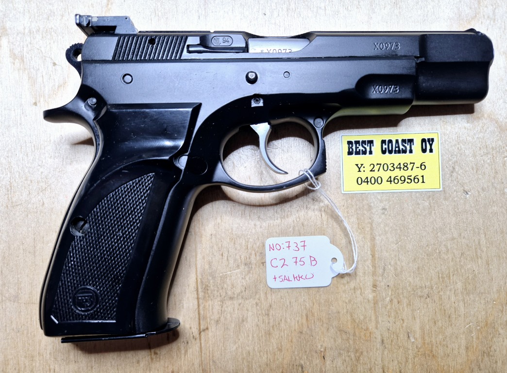 CZ 75B – sisäisellä iskurinpiikin varmistimella, kulmikkaalla liipasinkaarella ja rengasiskuvasaralla varustettu parannettu malli.