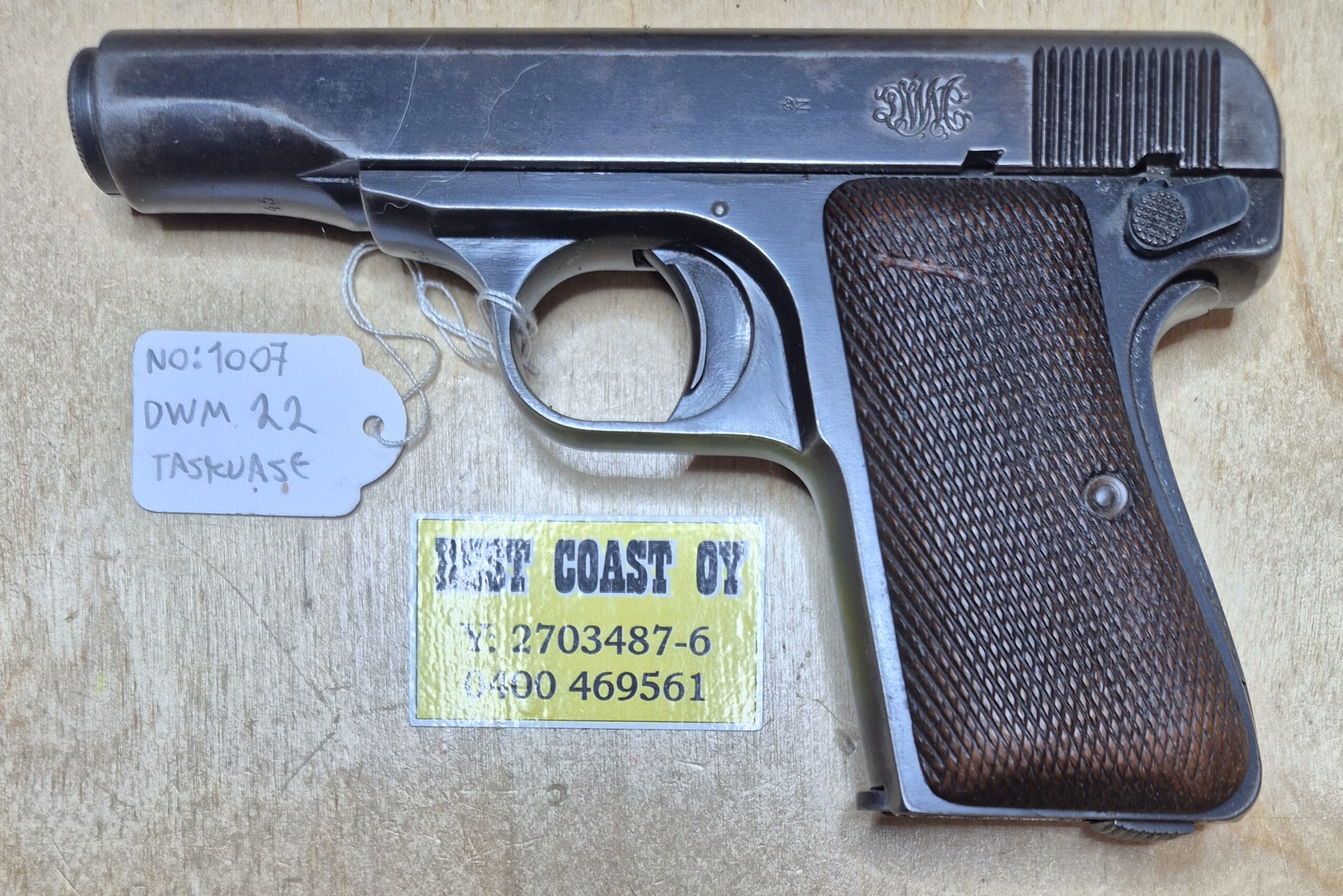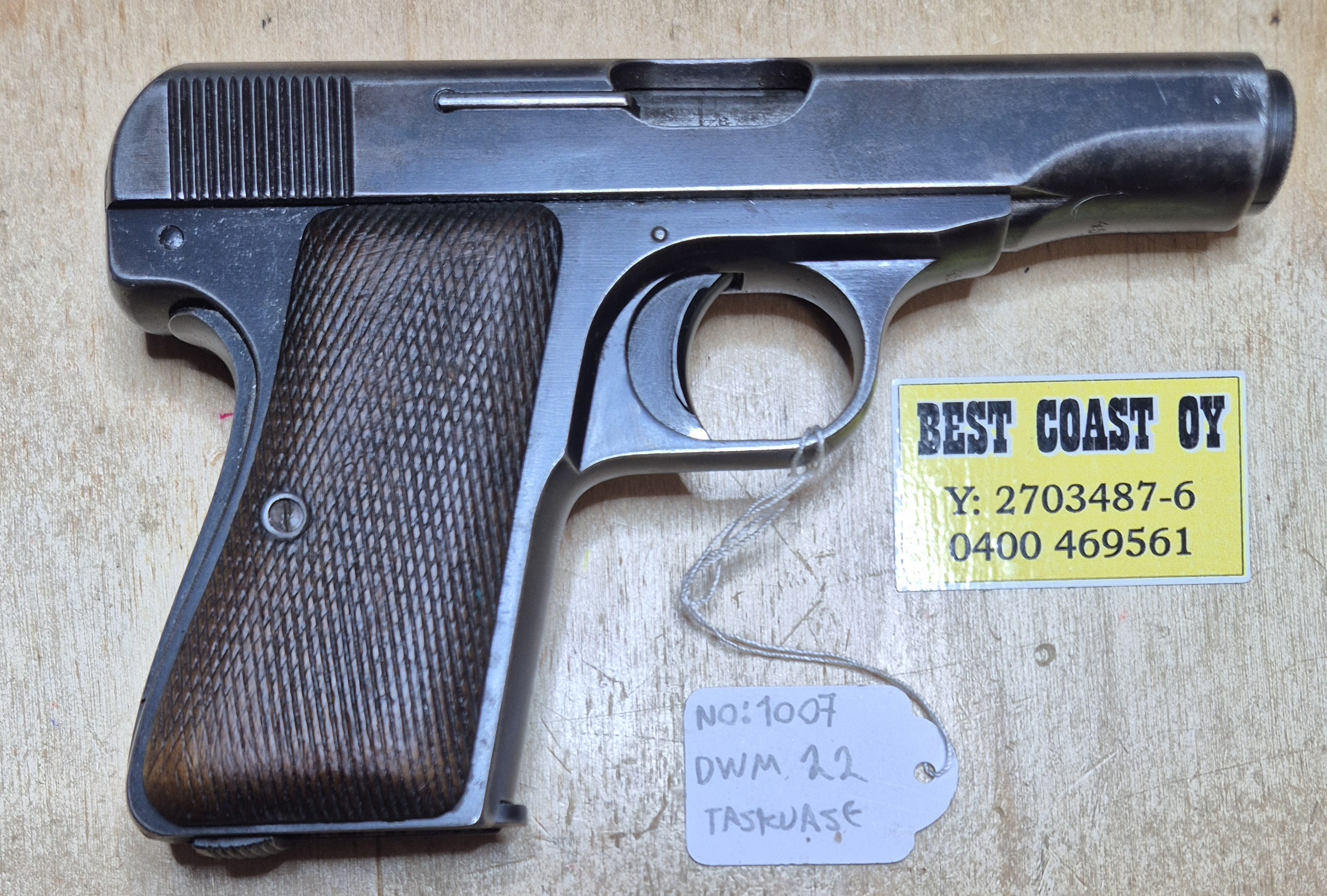 Deutsche Waffen und Munitionsfabrik (DWM) valmisti tätä asetta  Berliinissä 1921 – 1931  vain noin 40 000 kpl. Aseen esikuvana on käytetty FN 1910 asetta. Aseessa on saksanpähkinäpuiset kahvalevyt. Tämä ase on ihan tuotannon alusta, numero 45. Ase on harvinainen keräilykappale.