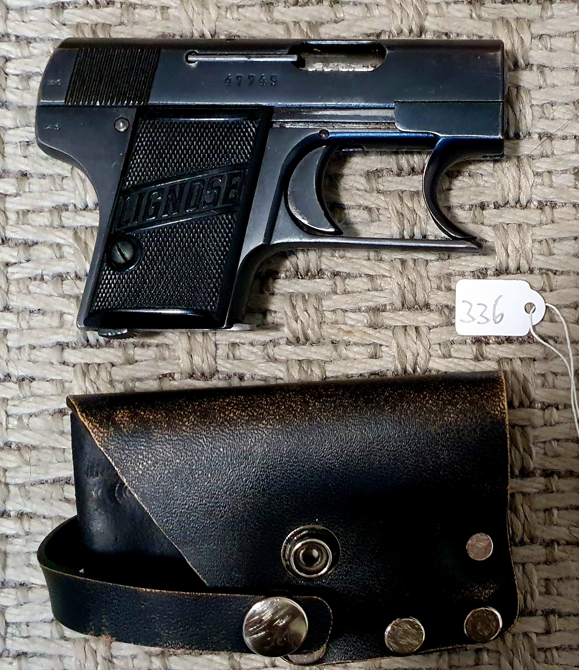 – Liivintaskupistooli omalla nahkakotelolla
