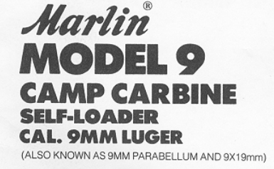 Marlin Model 9 Camp Carbine, kaliiperiltaan 9×19 mm