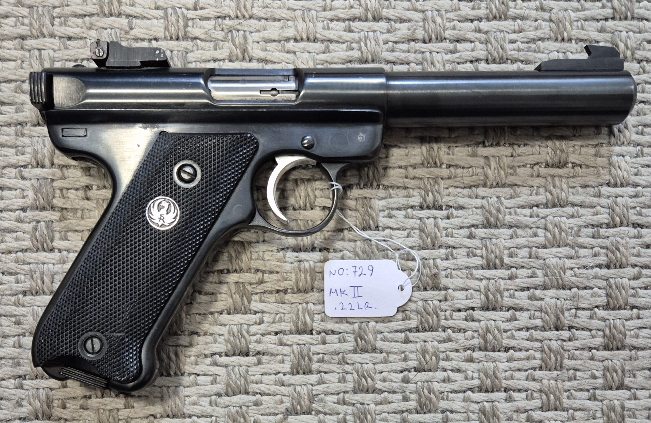 Ruger Mark 2 Target. Yksinkertainen ja varmatoiminen pienoispistooli. Mark 2 Targettia on käyttänyt USA laivaston erikoisjoukot ja Israelin tiedustelupalvelu.