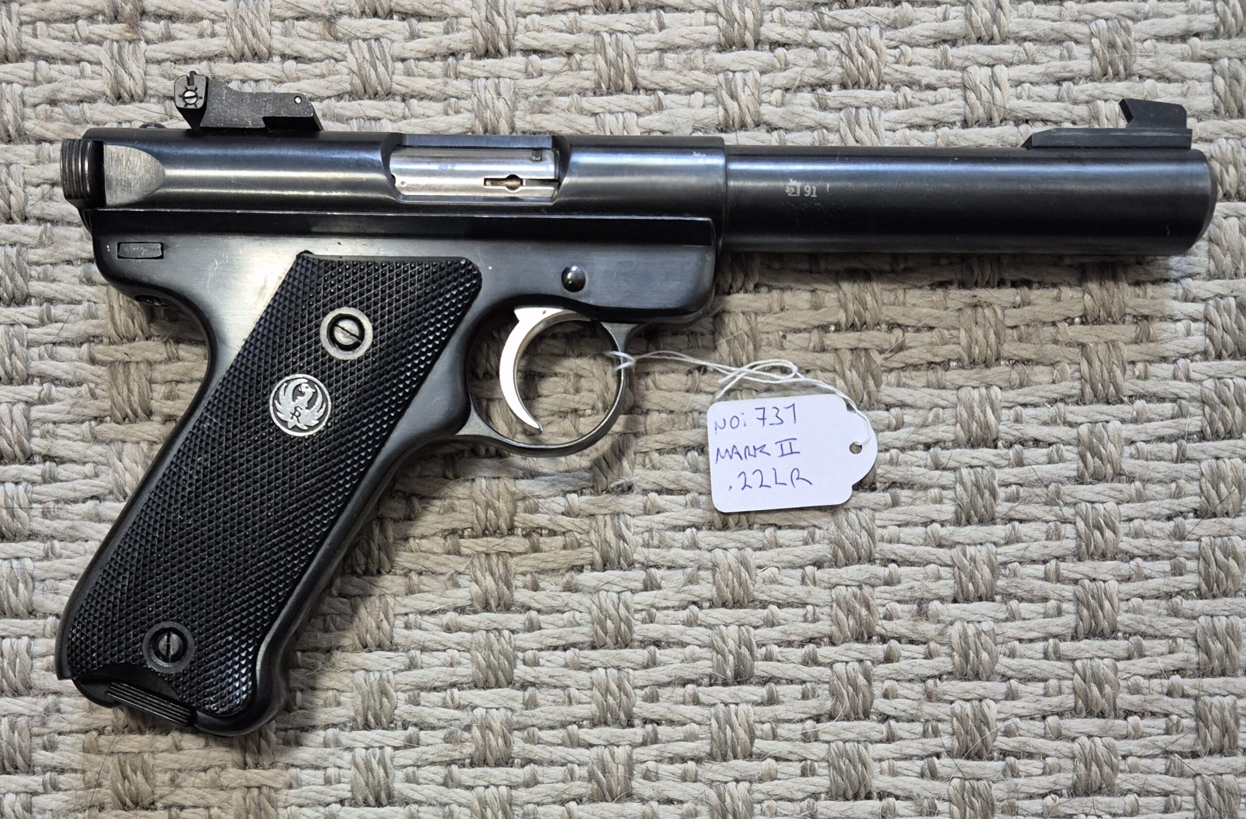 Ruger Mark 2 Target. Yksinkertainen ja varmatoiminen pienoispistooli. Mark 2 Targettia on käyttänyt USA laivaston erikoisjoukot ja Israelin tiedustelupalvelu.