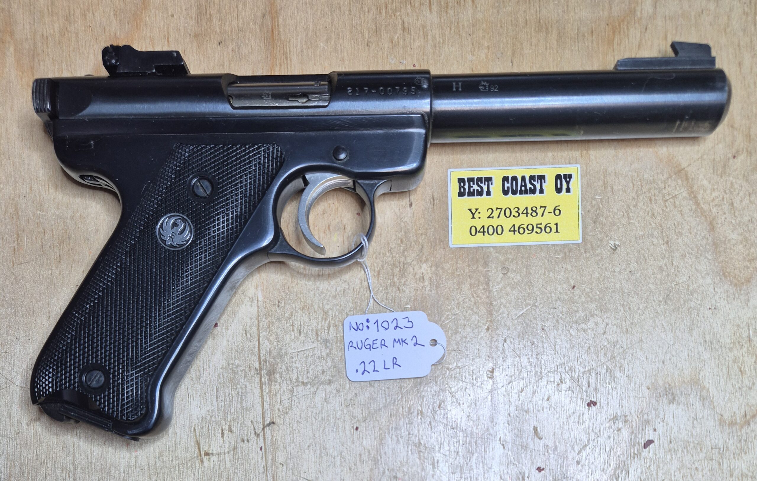 Ruger Mark 2 Target. Yksinkertainen ja varmatoiminen pienoispistooli. Mark 2 Targettia on käyttänyt USA laivaston erikoisjoukot ja Israelin tiedustelupalvelu.