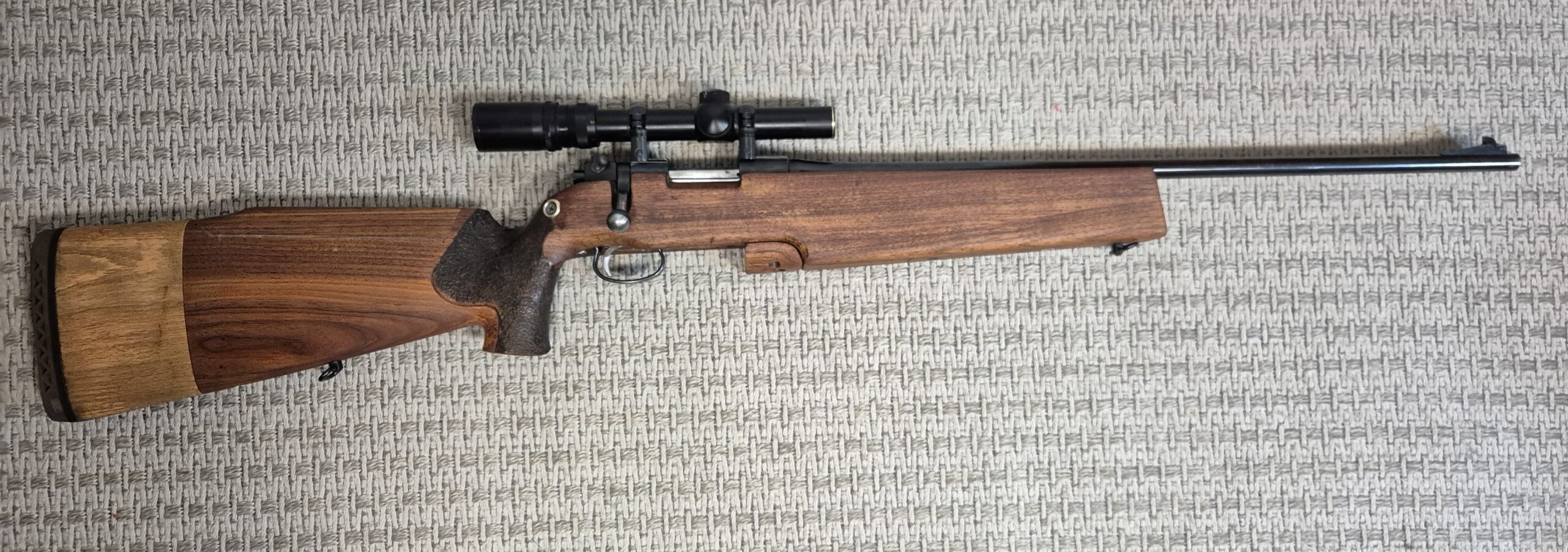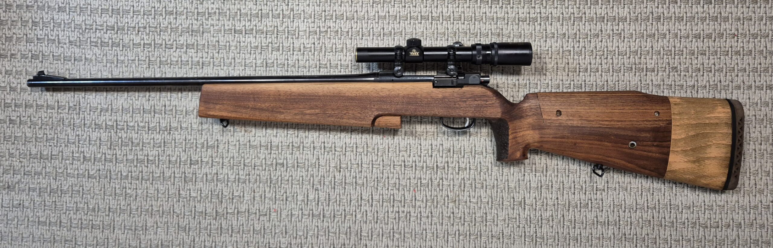 Tässä aseessa on siististi jatkettu tukki pitkälle aampujalle