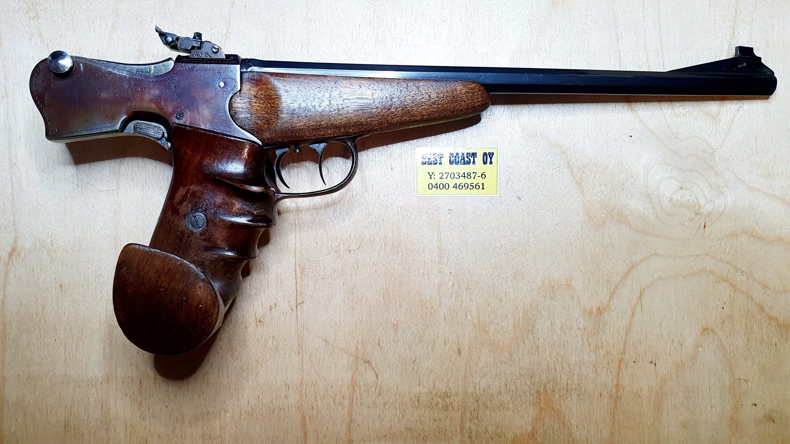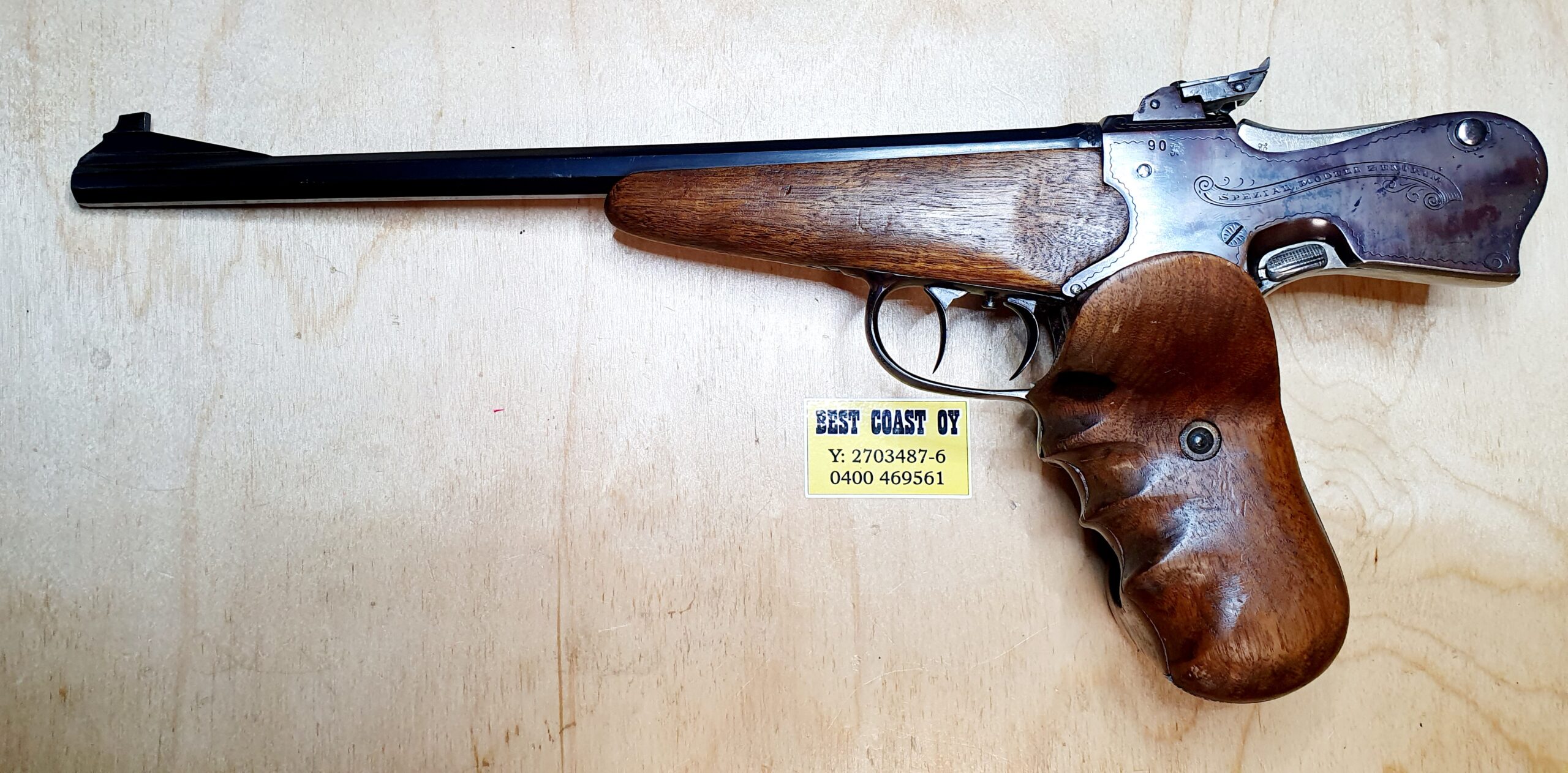SPEZIAL MODELL ZENTRUM vapaapistooli. Saksalaista laatua. 2 liipasinta, toisesta viritetään. Oikean käden muotokahva.