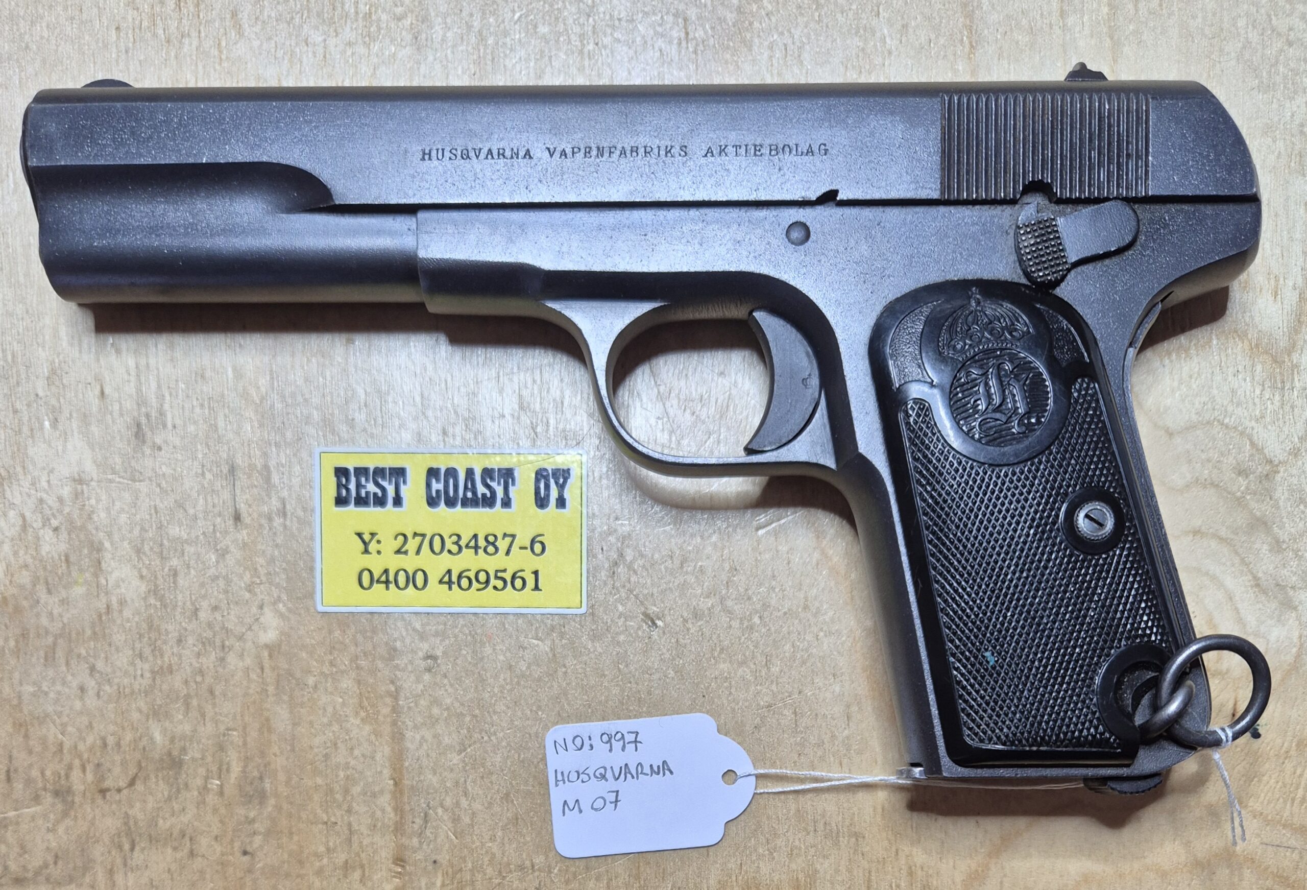 Swedish Pistol m/1907. Pistol m/1907 made by Husqvarna Gun factory