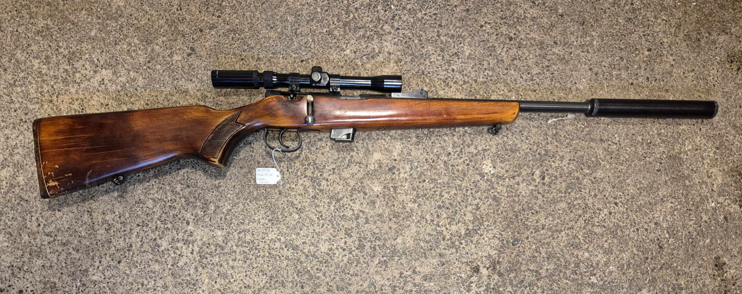 TOZ 1701 pienoiskivääri. Aseessa on kiikaritähtäin