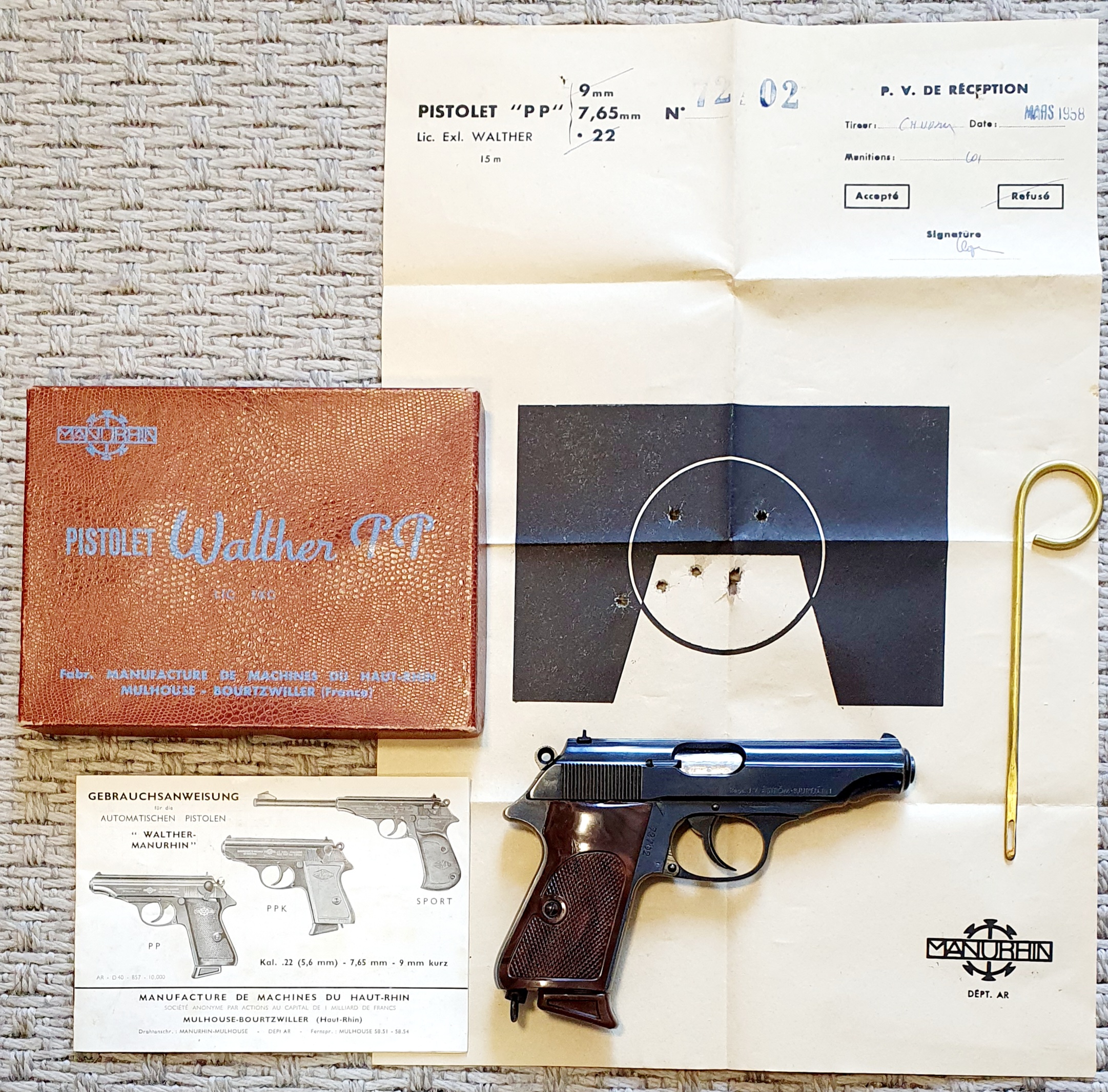 – ALKUPERÄINEN LAATIIKO, KOEAMMUNTATAULU, OHJEKIRJA, MUOTOILTU VAIHTOKAHVALEVY, PUHDISTUSPUIKKO